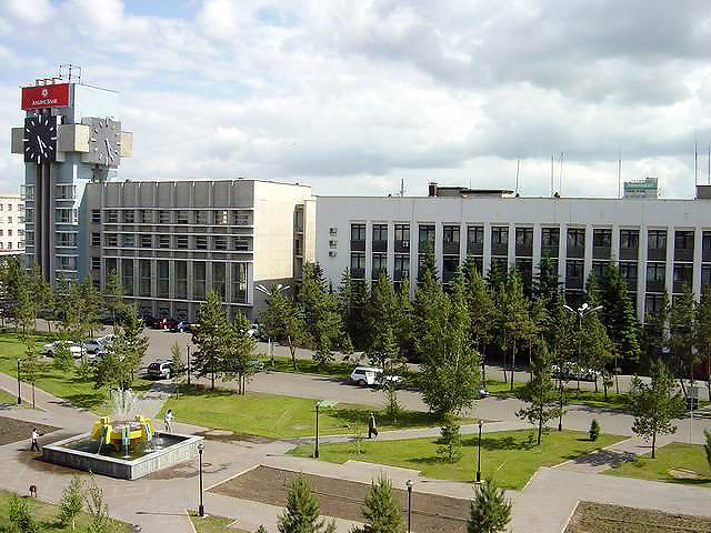 Павлодар. Здания городского акимата и центрального телеграфа.