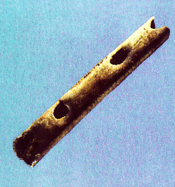 Флейта из кости птицы. Эпоха позднего палеолита.