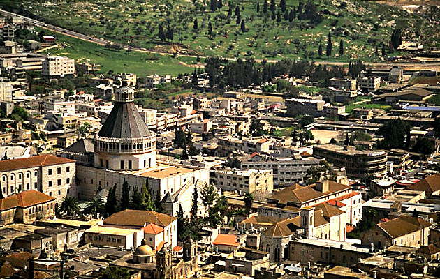 Палестина. Современный Назарет. На переднем плане церковь Благовещения.