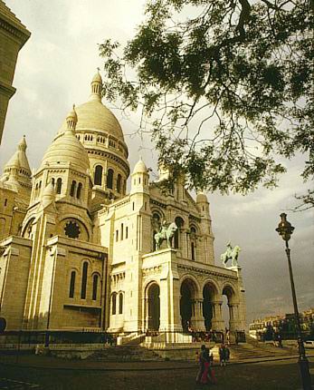 Париж. Базилика Сакре-Кер (церковь Сердца Христова). 1874-1919 гг. Архитектор П. Абади. Церковь построена по образцу собора Сан Фро в Периге. Воздвигнута на Монмартре, где началась Парижская Коммуна 1870-71, в ходе которой был убит архиепископ Парижский. Считалась символом не только религиозного, но и национального возрождения после поражения во Франко-прусской войне. Для строительства использован камень из Шато-Лондон, переливающийся неповторимыми оттенками молочно-розового цвета.