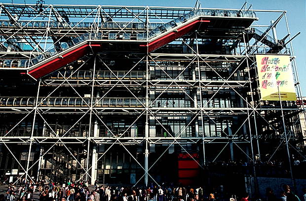 Центр Помпиду (центр национального искусства и культуры). Открыт 31 января 1977. Архитекторы Ренцо Пьяно (Италия) и Ричард Роджерс (Великобритания).