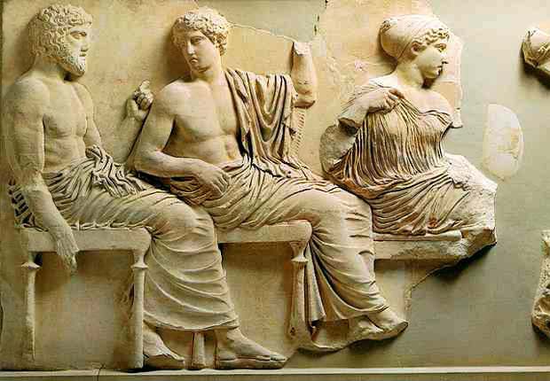 Круг Фидия. Посейдон, Аполлон и Артемида. Деталь восточного фриза Парфенона. 447-432 гг. до н.э.