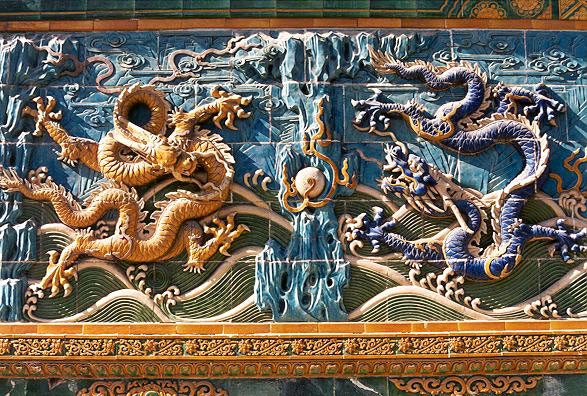 Стена Цзюлунби (Девяти Драконов) в парке Бейхай. 18 в. Пекин.