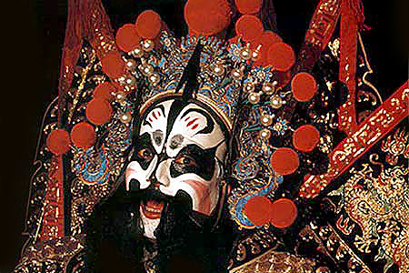 Пекин. Оперный театр в Пекине. Пекинская опера возникла из ярмарочных представлений. Спектакль представляет собой сочетание самых разных искусств и жанров (оперы, балета, пантомимы, трагедии и комедии). Кроме пения и диалогов, в нем есть пантомима и акробатика. Каждый жест руки, каждый шаг имеют определенный смысл.