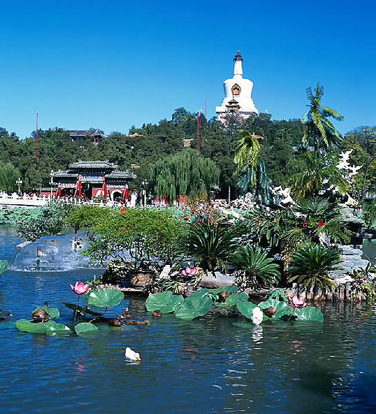 Пекин. Садово-парковый комплекс Бейхай. Пекин. В городах возникли комплексы небольших декоративных садов, воспроизводивших мир естественной природы с ее деревьями, мхами, водоемами, заброшенными беседками, но только построенный по законам пейзажной картины. В планировку сада Бейхай в Пекине включены горки, сложенные из массивных каменных глыб, бамбуковые рощицы, посадки из редкостных деревьев и кустарников.