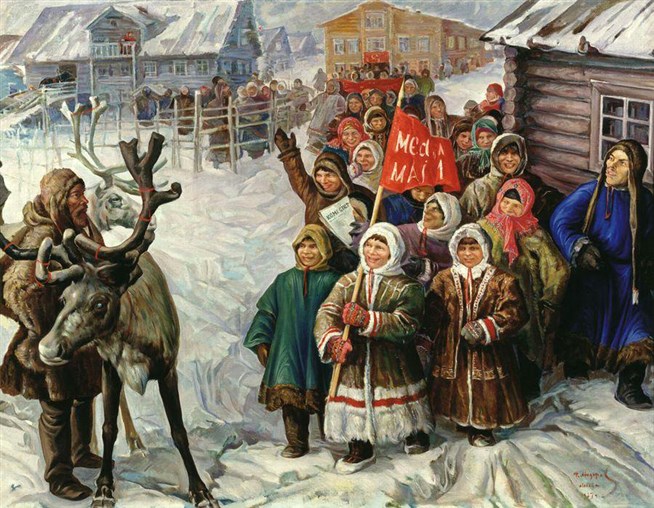 Федор Александрович Модоров (1890-1967). Праздник Первое мая в селе Колва. 1927 год. Холст, масло. Национальная галерея Коми.
