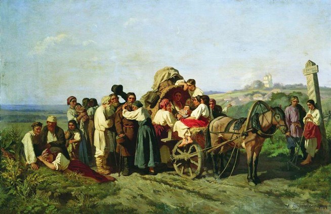 Константин Александрович Трутовский (1826-1893). Переселенцы из Курской губернии. Около 1864 года. Холст, масло. Русский музей, Петербург.