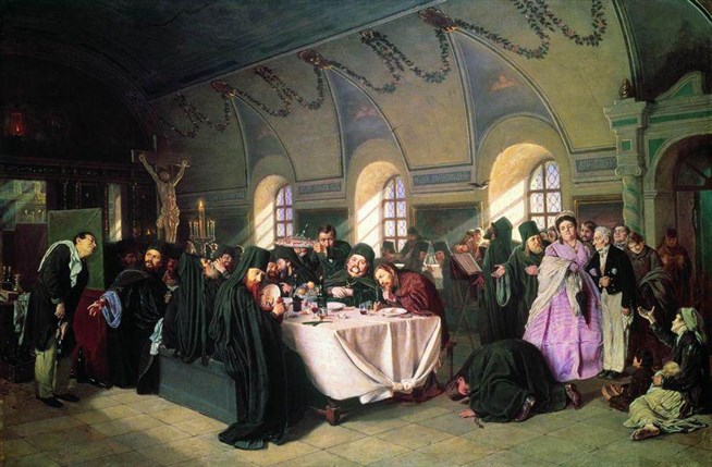 В.Г. Перов. Трапеза. 1865-1876 годы. Холст, масло. Русский музей, Петербург.