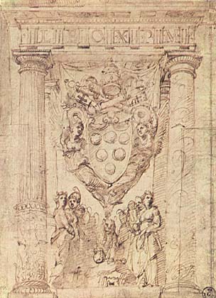 Бальдассаре Перуцци. «Герб Льва X» (перо). Галерея Уффици, Флоренция.