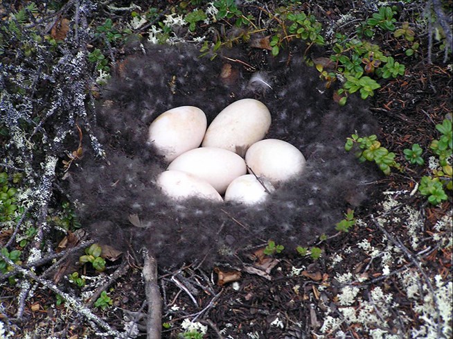 Пестроносый турпан (гнездо)