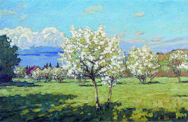 П.И. Петровичев. Цветущие вишни. 1919 год. Холст, масло. Владимиpо-Суздальский музей-заповедник.