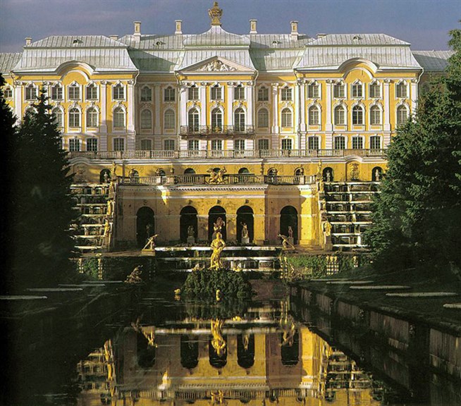 Цетральная часть Большого дворца. Вид со стороны фонтанов.