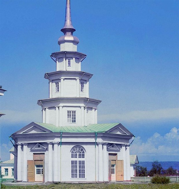 Петрозаводск. Петропавловская церковь, по преданию построенная Петром I, была перестроена в 1772 году, сгорела в 1924 году. Фотография С.М. Прокудина-Горского. 1915 год.