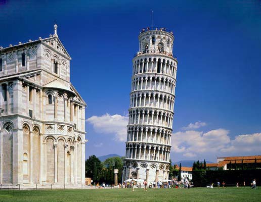 Колокольня Пизанского собора диаметром 16 м и высотой 55 м украшена шестью поясами белокаменных арочных галерей. Она строилась в 1174–1350. В процессе строительства произошла неравномерная усадка фундамента, из-за чего башня отклонилась от вертикали (отсюда ее название). К концу 20 в. отклонение достигло 5, 2 м.