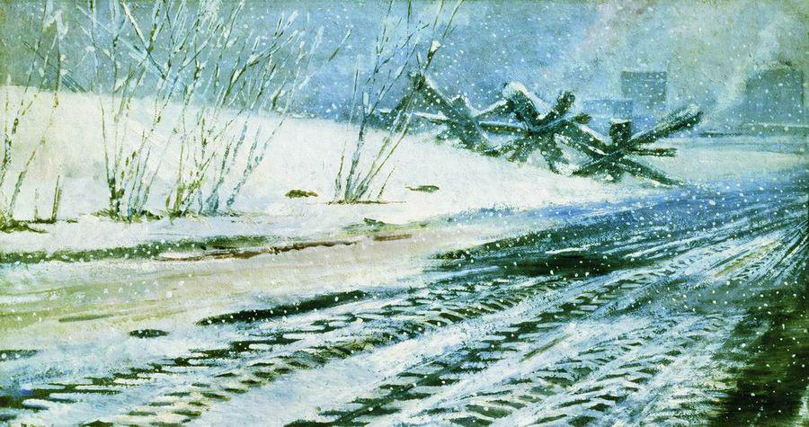 Ю.И. Пименов. Следы шин. 1944 год. Картон, масло. Третьяковская галерея.