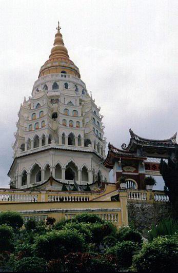 Пинанг. Семиэтажная пагода храма Кек Лок Си. Высота 30 метров. Восьмиугольное основание храма напоминает китайскую пагоду, средняя часть — тайскую, а верхняя часть — бирманскую.