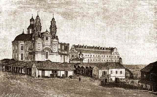 Пинск. На старинной гравюре монастырь францисканцев (1396) — один из самых больших ансамблей Белоруссии в стиле барокко.
