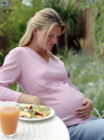 Питание беременной женщины должно быть рациональным, очень полезны фрукты и натуральные соки.