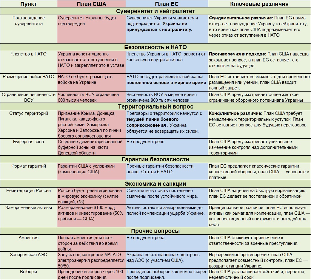 Сравнение вариантов Планов США и Евросоюза по мирному урегулированию конфликта на Украине