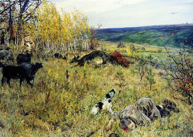 А.А. Пластов. Фашист пролетел. 1942 год. Холст, масло. Третьяковская галерея.