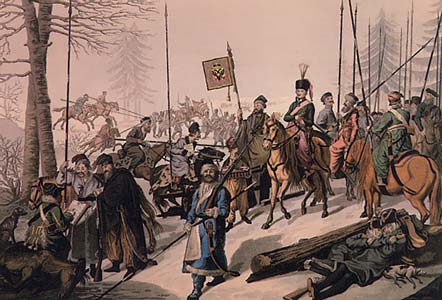Платов с казаками в походе. Гравюра А. Грегориуса по оригиналу Г. Шадова. 1813 год.Государственный исторический музей. Москва.