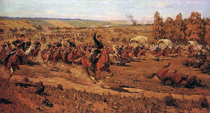Рейд казаков Платова в тыл наполеоновской армии. Художник Зелихман.1959.
