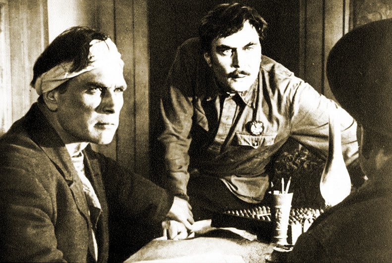 Петр Чернов (Давыдов) и Евгений Матвеев (Нагульнов) в фильме «Поднятая целина».