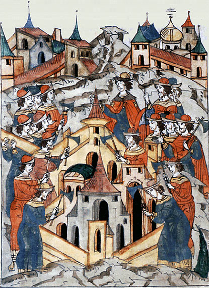 Строительство храма Василия Блаженного. Миниатюра из летописи.