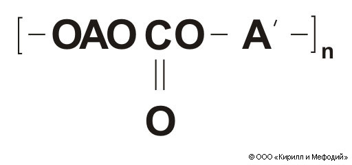 Структурная формула поликарбонатов. A и A' - алифатические или ароматические радикалы.