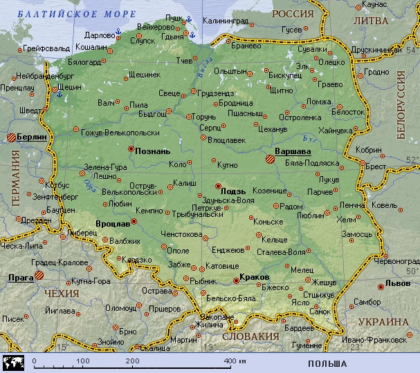 Польша (географическая карта).