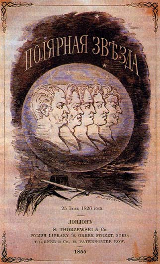Альманах «Полярная звезда, издаваемый А. И. Герценом в Лондоне. На обложке профили пяти казненных декабристов.