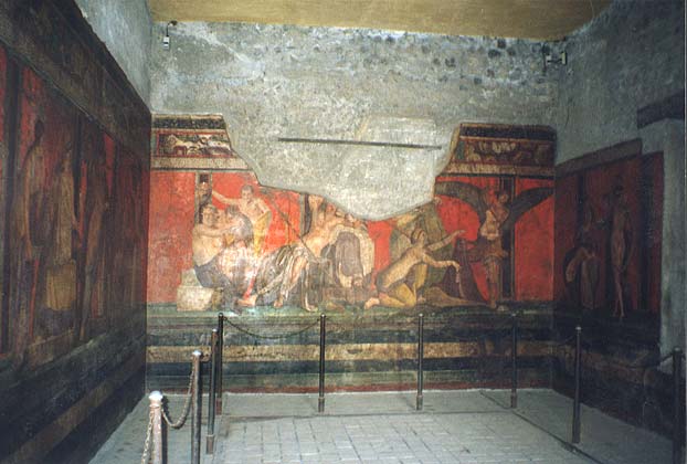 Настенная роспись 2-1 веков до н.э. На вилле Мистерий в Помпеях сохранились фрески с изображением 29 участников священного действа (мистерии), посвященного Дионису.