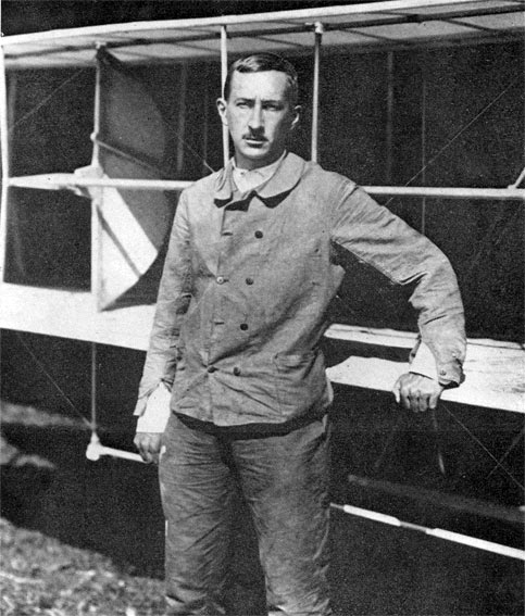 Н.Е. Попов у аэроплана «Райт». Первая международная авиационная неделя в Петербурге. Весна 1910 года.