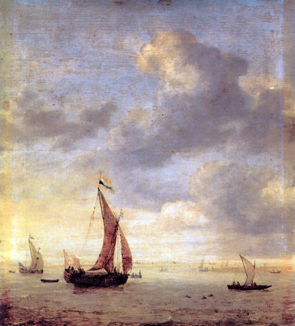 Ян Порселлис. Парусники в море в ветреный день. Дерево, масло. Государственные музеи, Берлин.