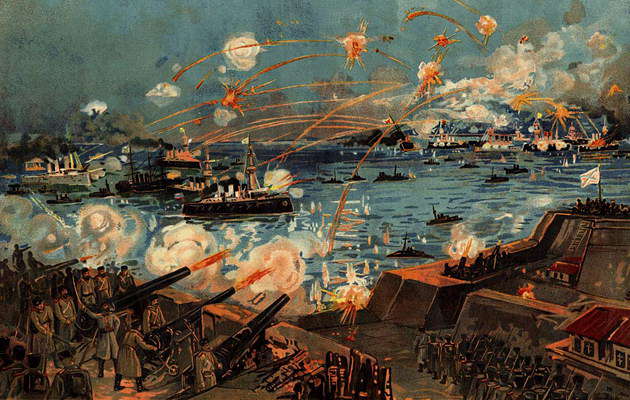 Морское сражение у Порт-Артура. Литография. 1904 г.