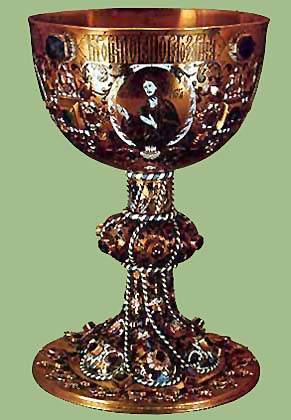 Потир боярыни А. И. Морозовой. Золото, драгоценные камни, эмаль. 1664. Государственные музеи Московского Кремля.