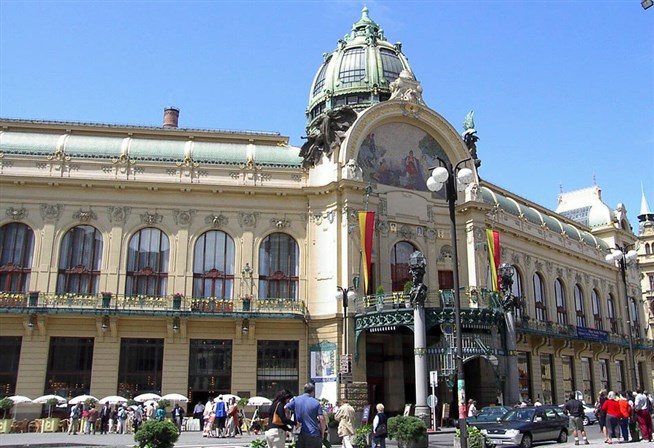 Прага. Общественный дом. Здание было построено архитекторами Антонином Балшанком и Освальдом Поливкой в 1911 году и является самым значительным памятником чешского модерна. Над декором здания работали скульптор Ладислав Шалоун и художник Альфонс Муха.
