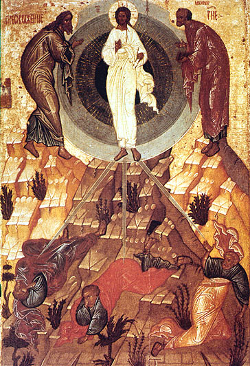 Новгородская иконописная школа. Преображение. Икона из праздничного ряда иконостаса Успенской церкви на Волотовом поле в Новгороде. Вторая половина 15 века.
