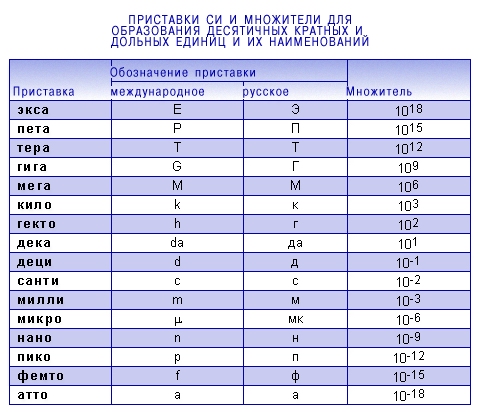 Приставки СИ и множители