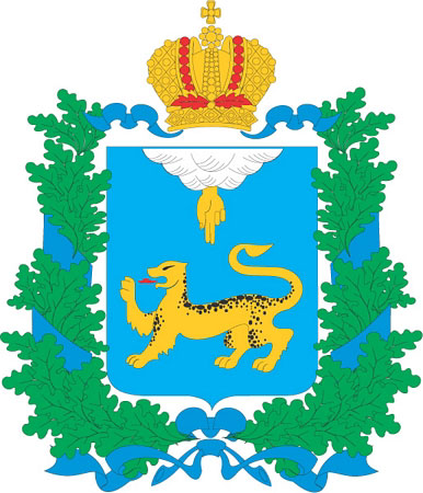 Герб Псковской области был принят 27 февраля 1995 года. Описание гласит: «В сине-голубом поле золотой идущий барс, сопровождаемый во главе щита выходящей из серебряного облака благословляющей рукой естественного цвета. Щит увенчан императорской короной и окружен золотыми дубовыми листьями, соединенными андреевской лентой». Областной герб практически повторяет исторический герб Псковской губернии, утвержденный 8 декабря 1856 года.