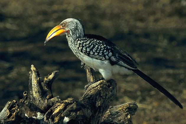 Обитатель африканских тропиков — желтоклювый токо, как и другие птицы-носороги, замуровывает самку в дупле и кормит ее и птенцов через небольшую щель.