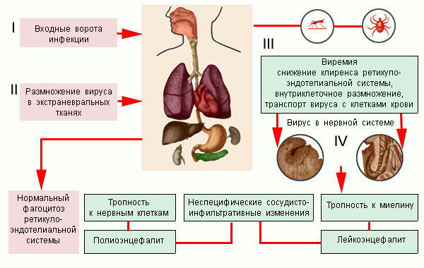 Пути проникновения и распространения вируса энцефалита в организме