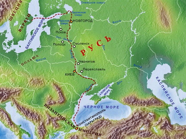 Карта одного из древних славянских торговых путей «из варяг в греки» (по Днепру).