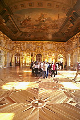 Пушкин. Зеркальный, или Большой, зал (1750-е гг, архитектор В. В. Растрелли) находится на втором этаже Екатерининского дворца и является частью сквозной анфилады роскошно убранных золоченой резьбой, зеркалами и ценными материалами парадных помещений.