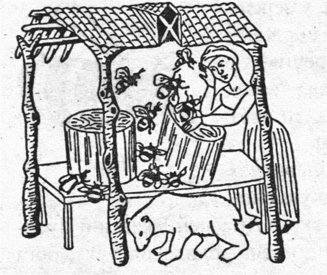 Молодая женщина, собирающая пчелиный мед (Травник XV века)