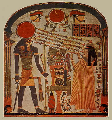 «Поклонение Ра-Гарахути». Раскрашенная стела. Около 1100 до н. э. Лувр.