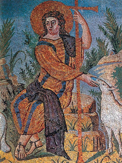 Христос — Добрый Пастырь. Мозаика в люнете мавзолея Галлы Плацидии. Фрагмент. 5 в. Равенна, Италия.