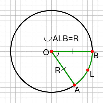Угол в один радиан — это угол, соответствующий дуге, длина которой равна ее радиусу.