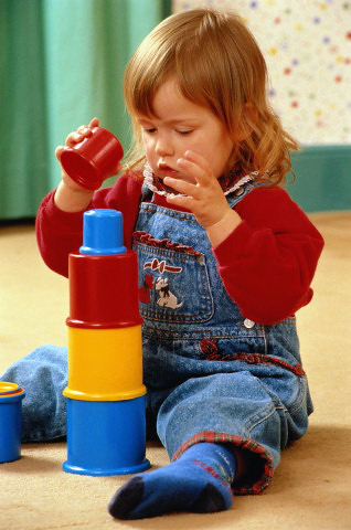 Пластмассовый конструктор из разноцветных баночек — отличное развлечение для малыша. Из него получаются очень красивые башни!