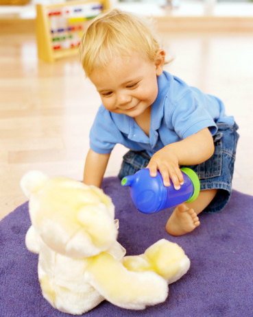 Учите ребенка играть и в ролевые игры. Пусть, например, он будет врачом и лечит игрушек или заботится о них: кормит, укладывает спать.